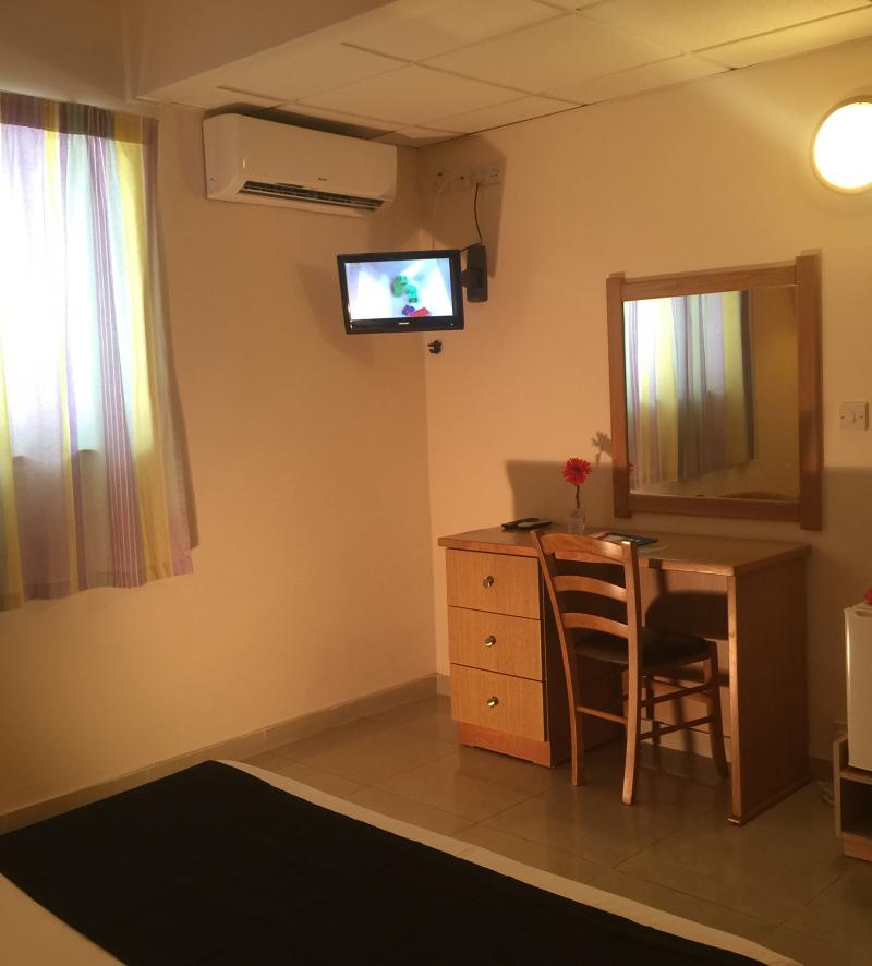 Rooms are fully air-conditioned, private ensuite bathroom, free WIFI, cable T.V, direct dialling telephone system, tea/coffee making facilities, refrigerator, and small window, situated at ground floor level. Cleaning including towel change every 3 days or on request at an extra charge.